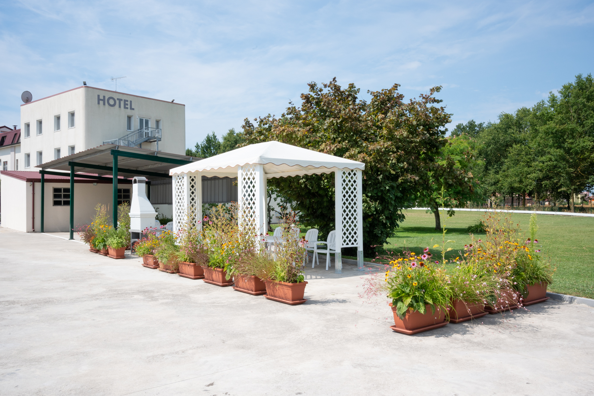 Immerso in un parco verde, l’hotel dispone di tavoli all’aperto, barbecue per grigliate e spazi ideali per rilassarsi o gustare un aperitivo.